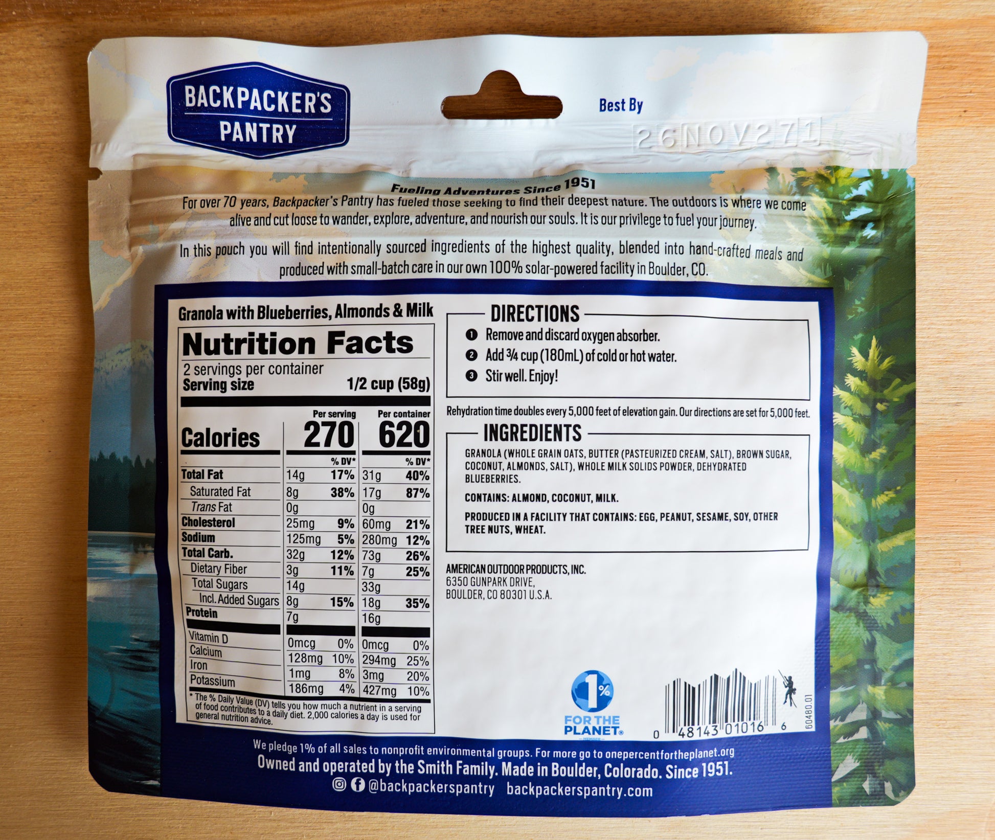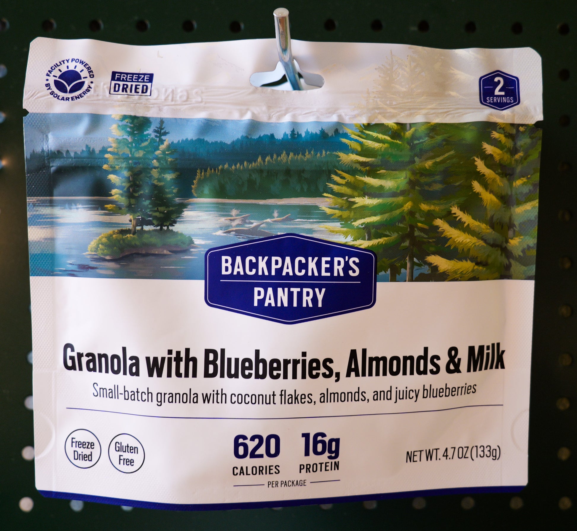 Small-batch granola with coconut flakes, almonds, and juicy blueberries.