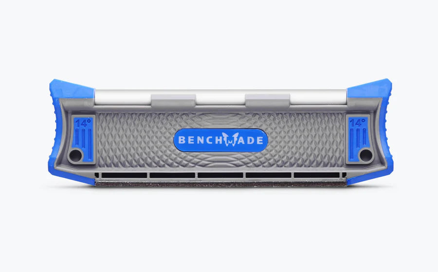 Guided Hone Tool with a 14° angle for SelectEdge® sharpening, designed with ceramic rod and leather strop to maintain sharpness.