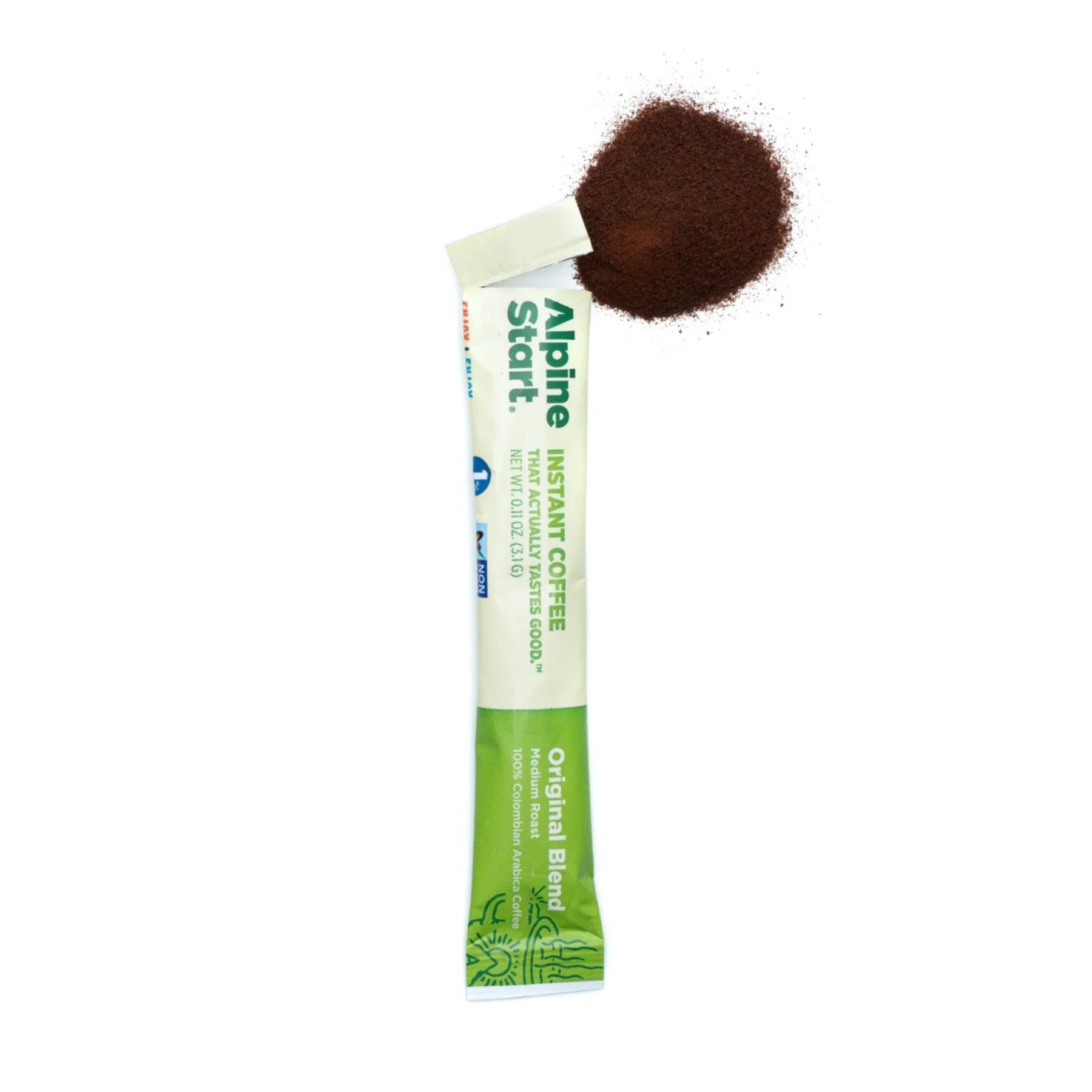 Alpine Start has brewed all the smooth, rich, and full-bodied flavor of the best 100% Colombian Arabica coffee beans into an instant. Wake up with our convenient, instant coffee powder singles packets when camping, traveling, or whenever you're on-the-go. Simply add 8 fl oz. of hot or cold water, mix, and enjoy a great-tasting cup of iced or hot coffee anytime, anywhere.