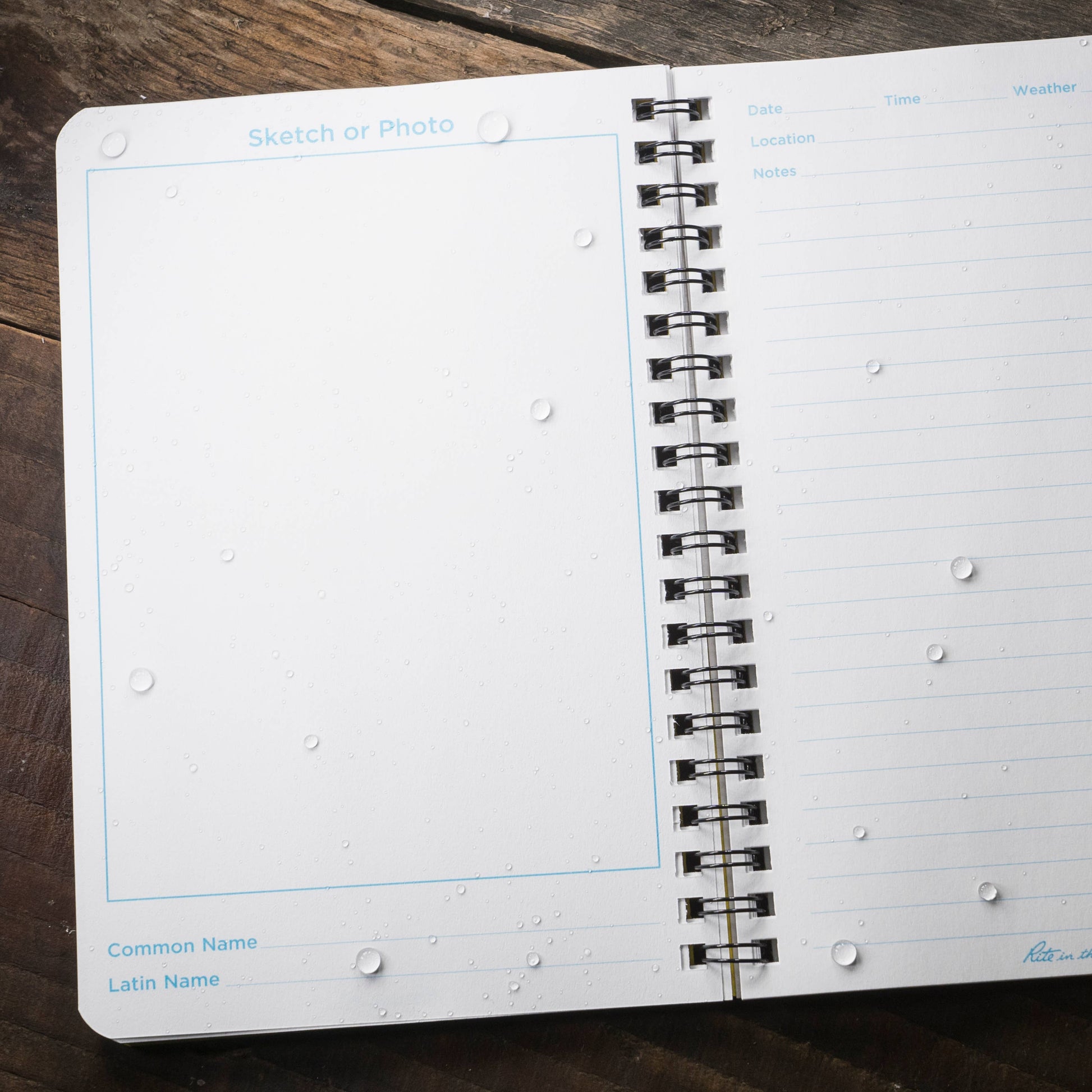 With our Rite in the Rain Birder's Journal, you can sketch and scribble notable avian features into the blank sketch field while writing detailed notes on the lined sheets. This paper that won’t turn to mush when wet and will repel water, sweat, grease, mud, and even survive the accidental laundry mishap and more. Tough impact-resistant Wire-O binding won't lose its shape in your backpack or book bag. Unlike a standard spiral notebook, Wire-O keeps your open pages aligned and intact. The Polydura material creates a tough but flexible cover. While birding, hiking, or outdoors, the Polydura cover material will defend your field notes from scratches and stains.