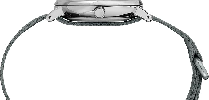 Adjustable grey 20 millimeter nylon slip-thru strap fits up to 8-inch wrist circumference.